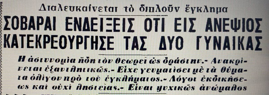 Ημίγυμνες και σε φρικώδη κατάσταση βρέθηκαν δυο γυναίκες σε βίλα στο Μαρούσι. Πυκνό πέπλο μυστηρίου σκέπαζε τη δολοφονία τους τον Ιούνιο του 1965, όταν ένα μικρό λάθος έβαλε στο κάδρο των ερευνών των ανιψιό της οικογένειας.