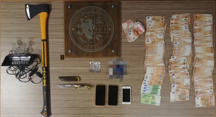 Σύμφωνα με πληροφορίες, κατά τη διάρκεια της έρευνας της ΕΛΑΣ στο αυτοκίνητο του βρέθηκε ποσότητα ναρκωτικών (δύο καρτέλες Xanax και δύο σακκουλάκια με κάνναβη) και ακόμη 18.355 ευρώ. Στο σπίτι του τράπερ βρέθηκαν δύο σφαίρες των 38 χιλιοστών, ένα τσεκούρι, ένα μαχαίρι 29 εκ. ωστόσο, δεν βρέθηκε κανένα από τα όπλα που απεικονίζονται στο επίμαχο βίντεο.