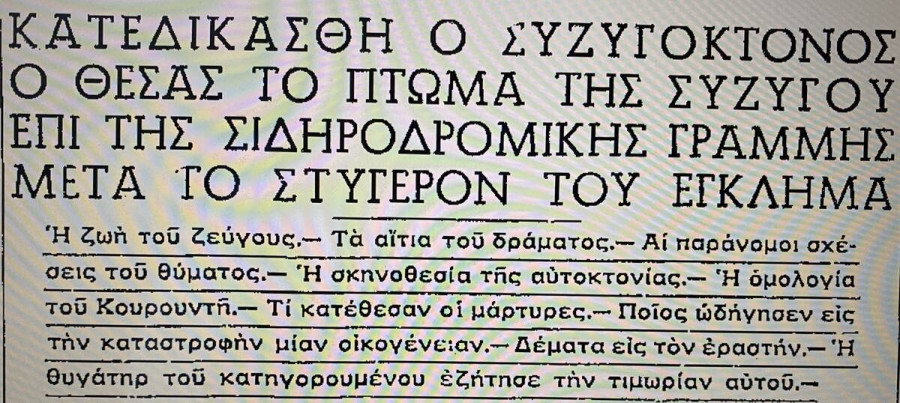 Σε μόλις τρεισήμισι χρόνια φυλάκιση καταδικάστηκε ο 39χρονος βυρσοδέψης του Σιδηροκάστρου που δολοφόνησε την 30χρονη σύζυγό του Μαρίκα τον Φεβρουάριο του 1957 και επιχείρησε να καλύψει το έγκλημα του στήνοντας σκηνικό αυτοκτονίας στις γραμμές του τρένου.