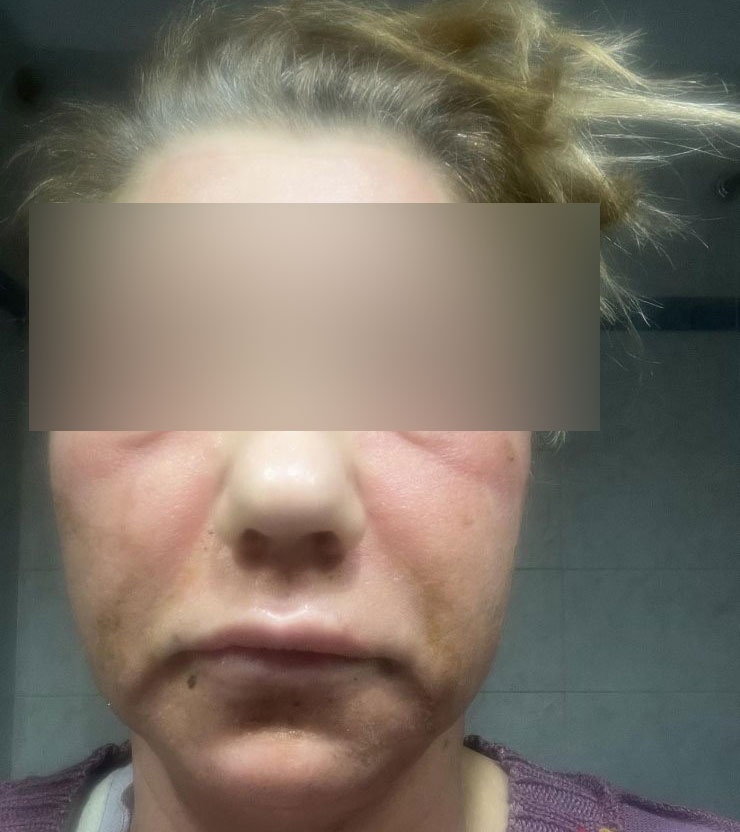 Και κάπου εδώ, οι υποψίες του θύματος ότι κάτι δεν πάει καλά, γίνονται εφιάλτης με ορατά τα αποτελέσματα στο πρόσωπό της, το οποίο πήγε για να το φροντίσει και… κατέληξε να μην μπορεί να βγει από το σπίτι, με προσωρινά, ευτυχώς, αποτελέσματα.