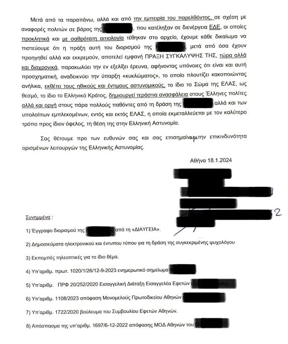 Η υπόθεση της ψυχολόγου της ΕΛ.ΑΣ., που εδώ και μήνες βρίσκεται στο στόχαστρο των Αρχών και σε βάρος της βρίσκονται δύο ελεγκτικές διαδικασίες -η μία από το Εσωτερικών Υποθέσεων και η άλλη από τη Διεύθυνση Υγειονομικού της ΕΛ.ΑΣ.- είναι από τις πιο χαρακτηριστικές, που καταδεικνύει και το μέγεθος του του προβλήματος.