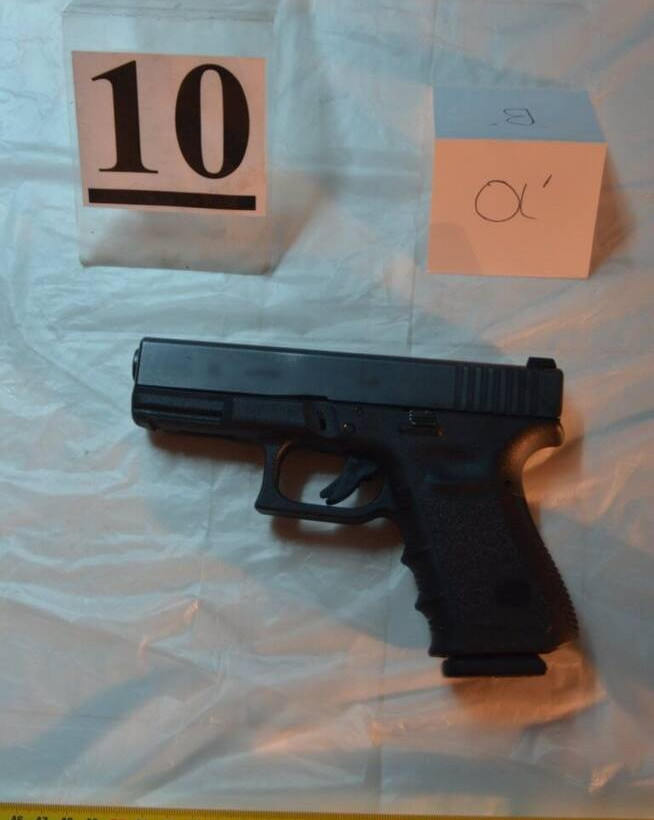 Επιπλέον, κατά τη σύλληψή τους κατασχέθηκαν στην κατοχή τους 2 πιστόλια, έτοιμα προς χρήση (με σφαίρα στη θαλάμη) και δυο «κασετίνες» με χρήματα, προερχόμενα από τη ληστεία.