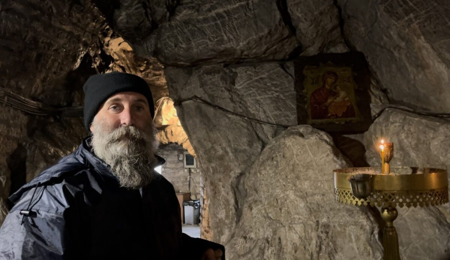 Ο πατήρ Ιωάννης ξεναγεί το Νewsbomb.gr, μας περιγράφει το πώς ακριβώς πελεκήθηκε ο βράχος για να δημιουργηθεί αυτό το αρχιτεκτονικό θαύμα της εποχής του, ενώ απευθύνει μια αγωνιώδη έκκληση προς αυτούς που έκλεψαν τη θαυματουργή εικόνα.