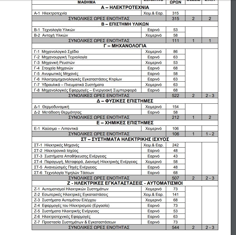 Δείτε αναλυτικά στους πίνακες τα μαθήματα διδασκαλίας και το πρόγραμμα.