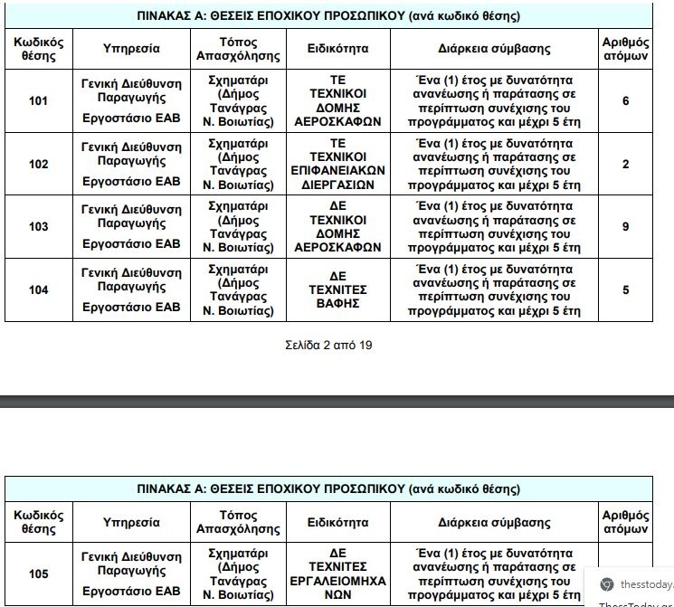 Δείτε στον παρακάτω πίνακα αναλυτικά τις θέσεις: