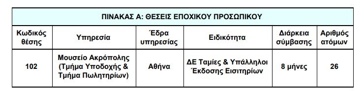 ΑΣΕΠ: Το «πράσινο» φως για την πρόσληψη 26 υπαλλήλων, με 8μηνη σύμβαση εργασίας, πήρε το Μουσείο Ακρόπολης.