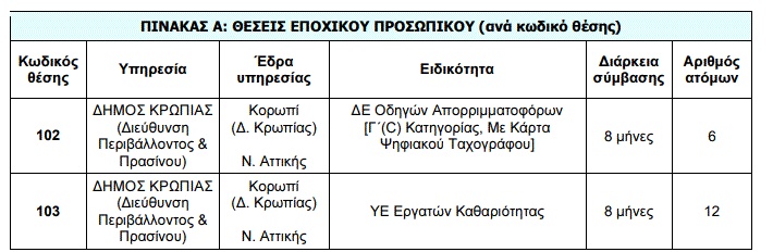 Με 18 υπαλλήλους ενισχύεται άμεσα ο δήμος Κρωπίας.