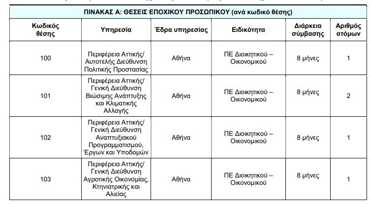 Η Περιφέρεια Αττικής ανακοινώνει την πρόσληψη 36 ατόμων με σύμβαση εργασίας ιδιωτικού δικαίου ορισμένου χρόνου, διάρκειας 8 μηνών.