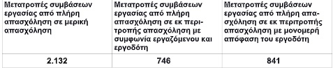 Ειδικότερα, έχουμε 2.132 θέσεις πλήρους απασχόλησης που μετατράπηκαν