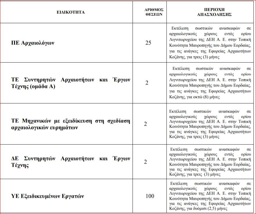 Εφορεία Αρχαιοτήτων Κοζάνης: 131 άτομα με Σύμβαση Ορισμένου Χρόνου