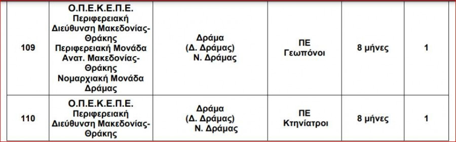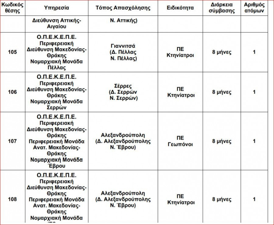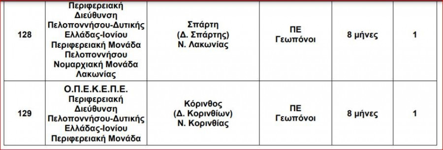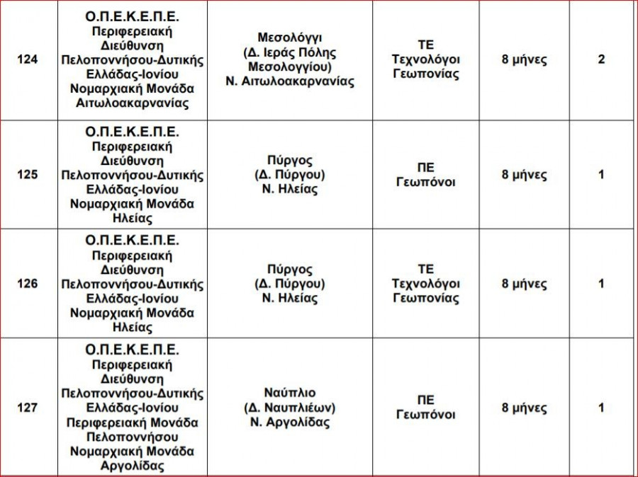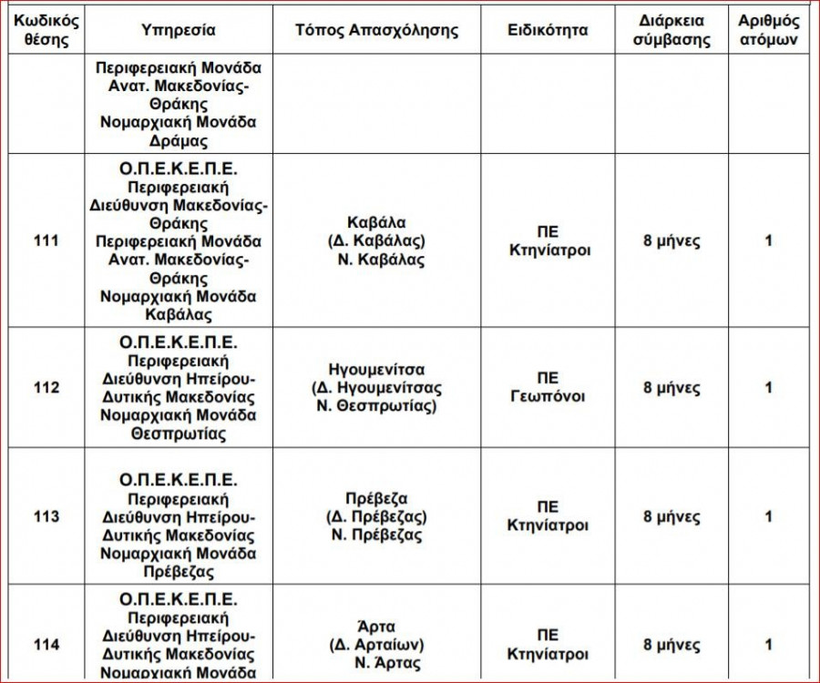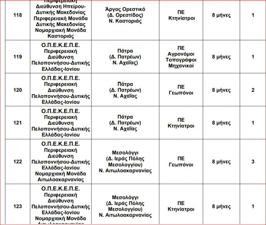 Οι νέες προσλήψεις αφορούν τις εξής 24 περιοχές: