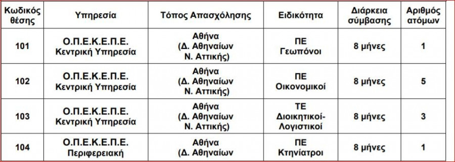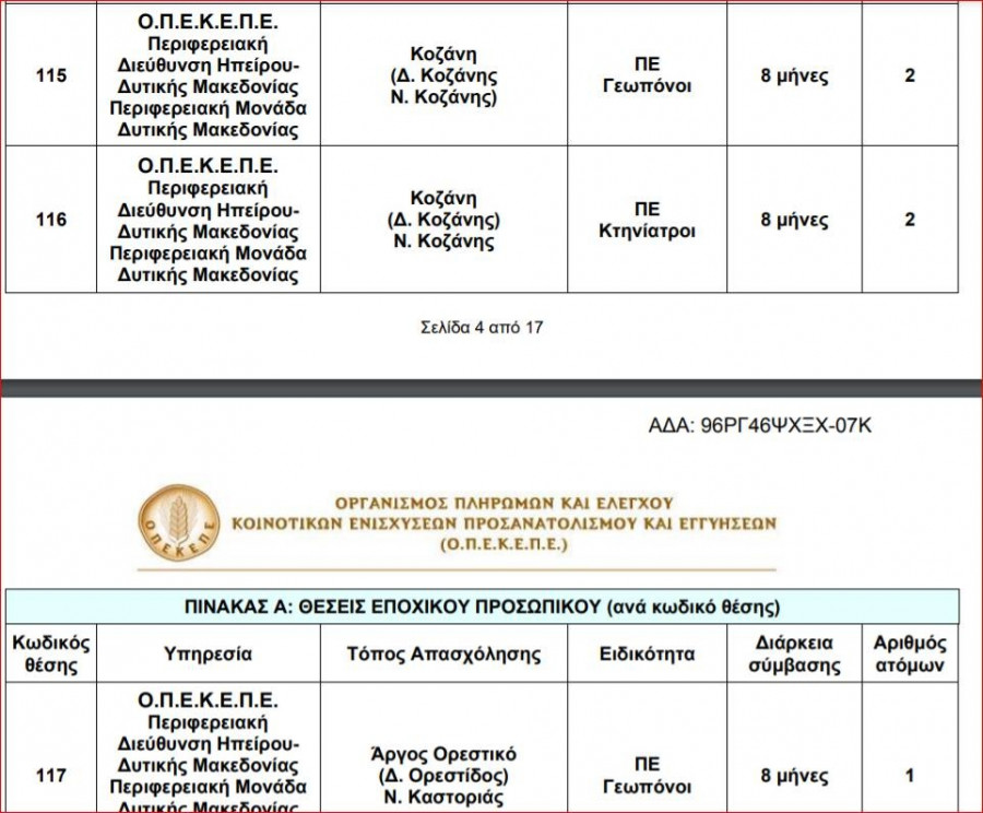 ΟΠΕΚΕΠΕ: Προσλήψεις προσωπικού σε όλη την Ελλάδα - Δείτε αναλυτικά (πίνακες)