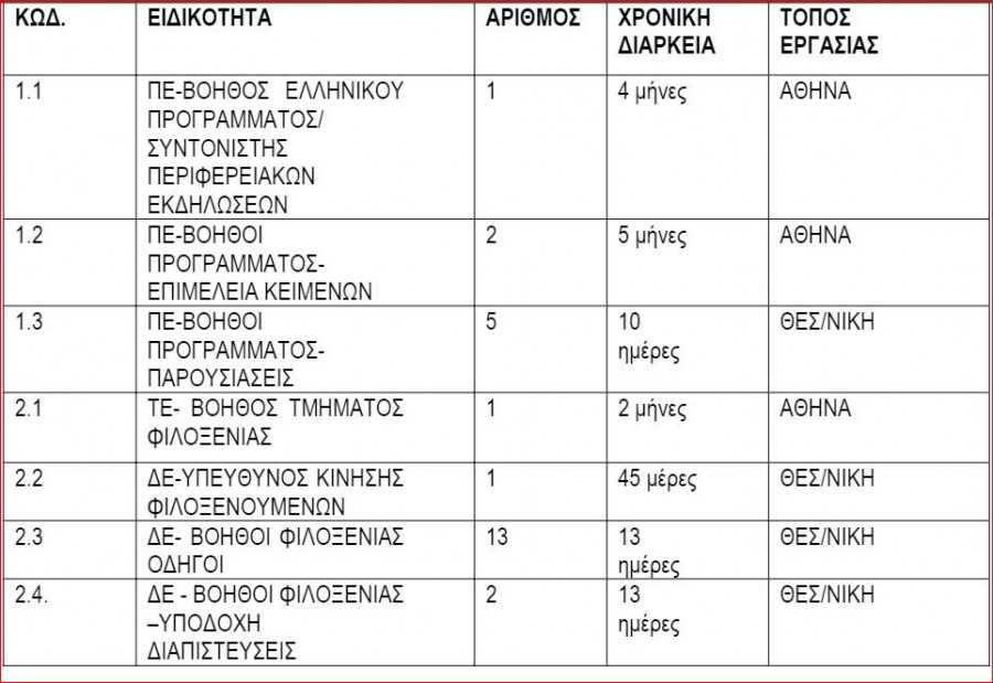 Δείτε αναλυτικά τις θέσεις στον πίνακα:
