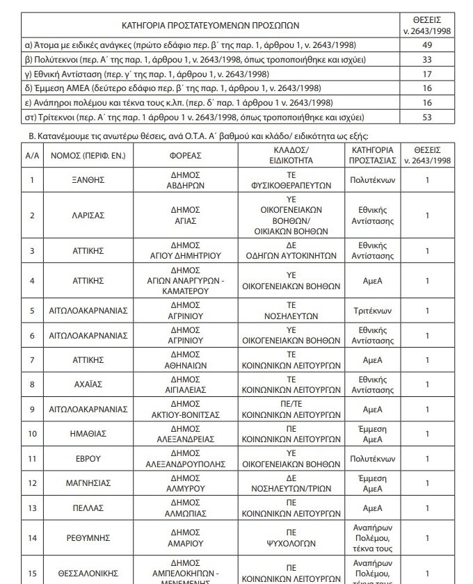 Δείτε αναλυτικά τις θέσεις ανά περιοχή: