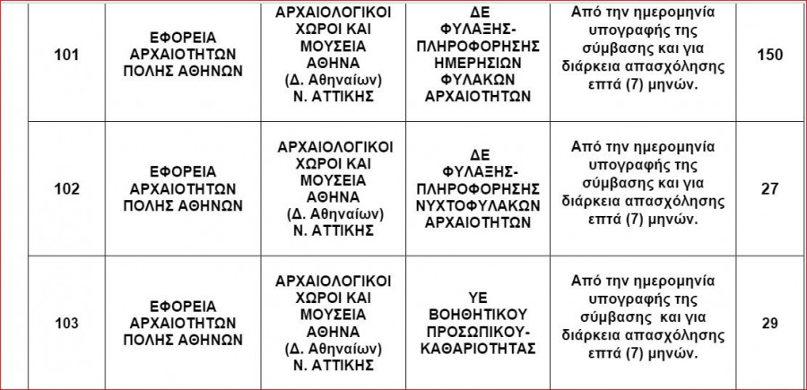 ΑΣΕΠ: Η Εφορεία Αρχαιοτήτων Πόλης Αθηνών, γνωστοποιεί την πρόσληψη, με σύμβαση εργασίας ιδιωτικού δικαίου ορισμένου χρόνου, συνολικά 206 ατόμων για την κάλυψη εποχικών ή παροδικών αναγκών.