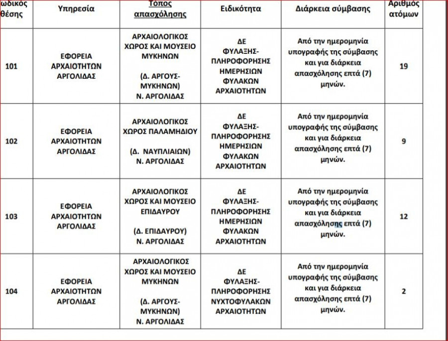 ΑΣΕΠ: Προσλήψεις με σύμβαση εργασίας ιδιωτικού δικαίου ορισμένου χρόνου, συνολικά πενήντα δύο (52) ατόμων για την κάλυψη εποχικών ή παροδικών αναγκών της Εφορείας Αρχαιοτήτων Αργολίδας, που εδρεύει στο Ναύπλιο του Νομού Αργολίδας,