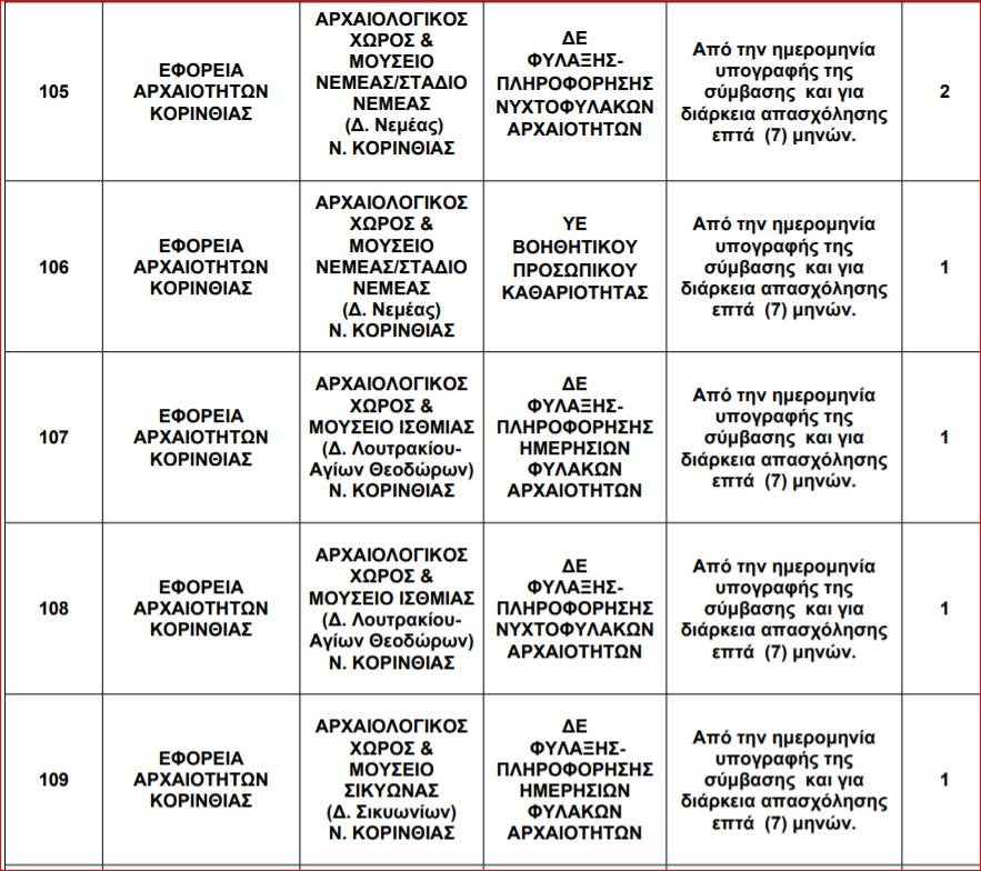 ΑΣΕΠ: Πρόσληψη, με σύμβαση εργασίας ιδιωτικού δικαίου ορισμένου χρόνου, συνολικά σαράντα τεσσάρων (44) ατόμων για την κάλυψη εποχικών ή παροδικών αναγκών της Εφορείας Αρχαιοτήτων Κορινθίας