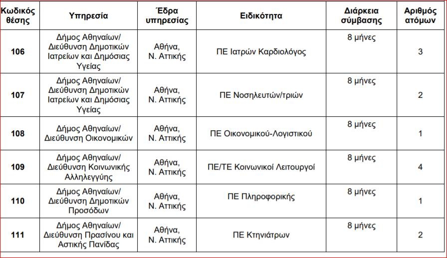 Δείτε στον πίνακα αναλυτικά τις θέσεις και τις ειδικότητες: