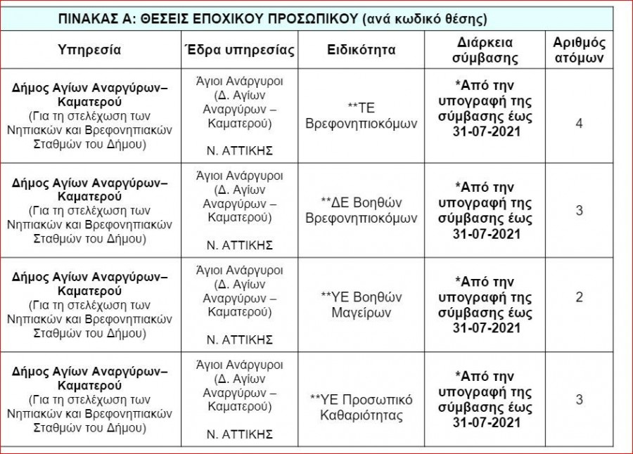 Δείτε στον πίνακα τις θέσεις εργασίας: