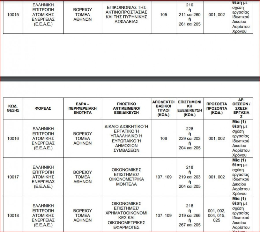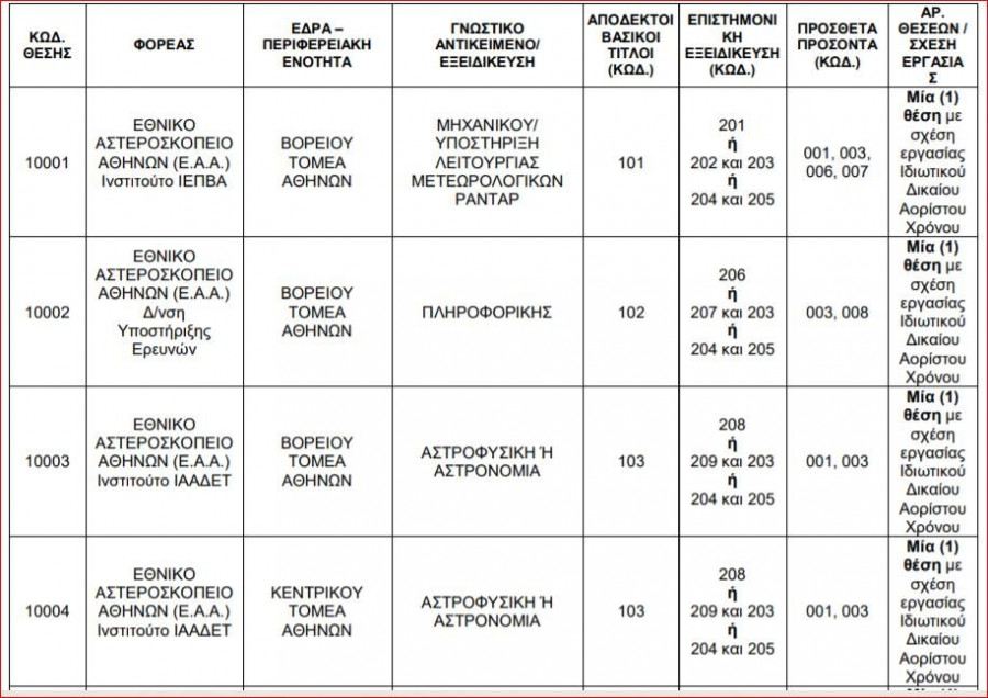 Δείτε στον πίνακα αναλυτικά τις θέσεις εργασίας: