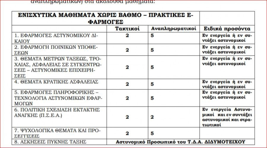 Η Σχολή Αστυφυλάκων/Τμήμα Δοκίμων Αστυφυλάκων Διδυμοτείχου, ανακοινώνει την πρόσληψη διδακτικού προσωπικού με ωριαία αποζημίωση.