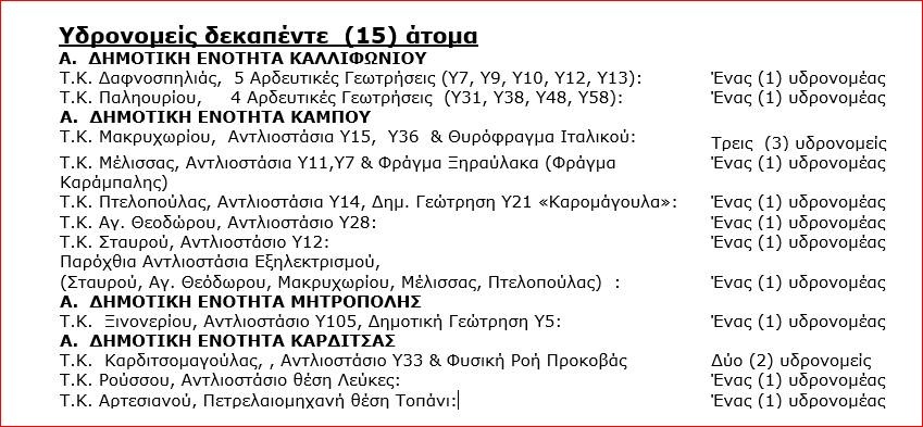 Η απασχόλησή τους θα είναι μερική και θα αφορά το χρονικό διάστημα από την πρόσληψή τους μέχρι τη λήξη της αρδευτικής περιόδου.