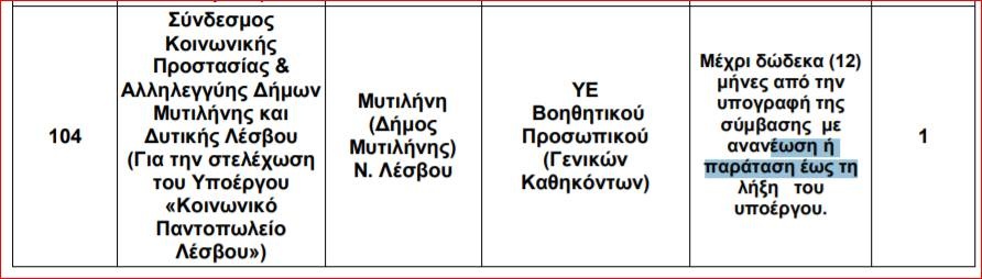 ΑΣΕΠ: Με τέσσερις υπαλλήλους ενισχύεται άμεσα, ο Σύνδεσμος Κοινωνικής Προστασίας και Αλληλεγγύης Δήμων Μυτιλήνης και Δυτικής Λέσβου.