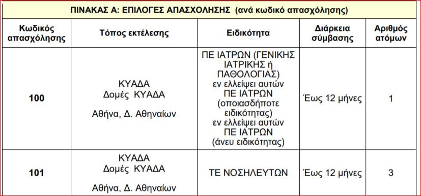 ΠΕ Ιατρών (Γενικής Ιατρικής ή Παθολογίας) εν ελλείψει αυτών ΠΕ Ιατρών (οποιαδήποτε ειδικότητας) εν ελλείψει αυτών ΠΕ Ιατρών (άνευ ειδικότητας) (1θέση)