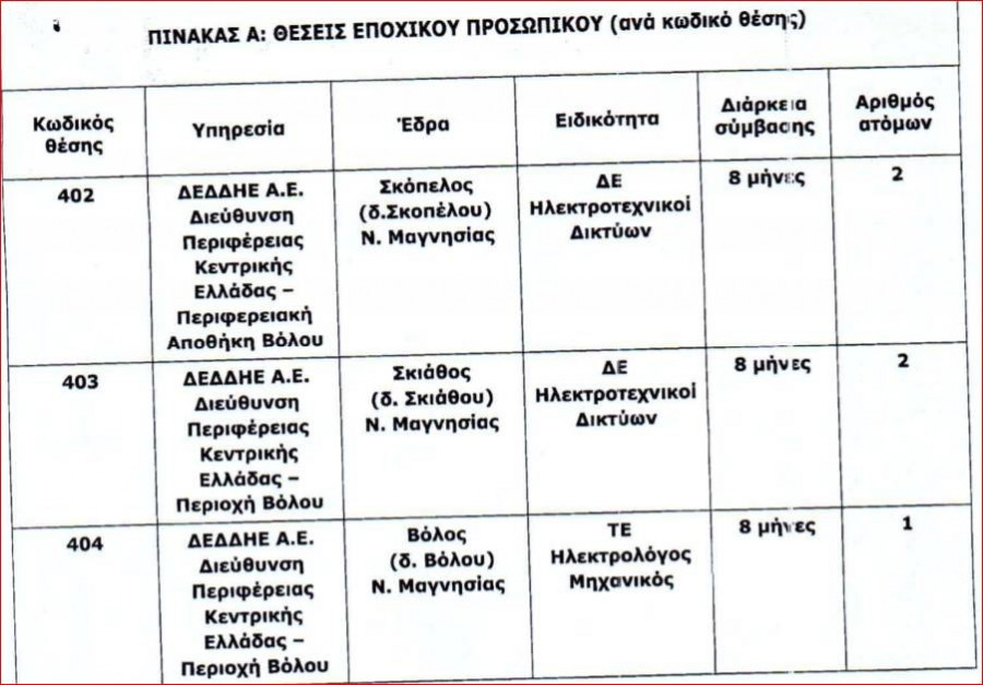 ΑΣΕΠ: Με 13 άτομα θα ενισχυθεί η ΔΕΔΔΗΕ Βόλου - Όλες οι πληροφορίες