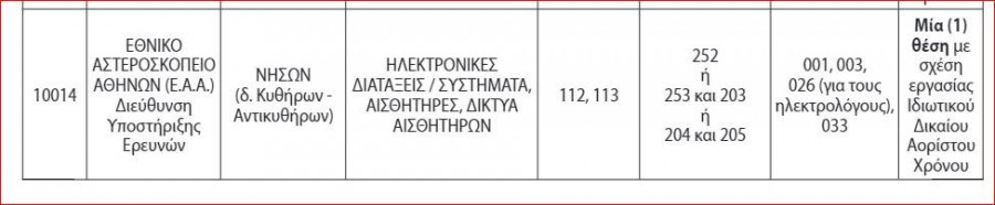 Η προκήρυξη αφορά στην πλήρωση συνολικά είκοσι επτά (27) θέσεων Ειδικού Επιστημονικού και Τεχνικού Προσωπικού στο Εθνικό Αστεροσκοπείο Αθηνών (ΕΑΑ), στην Ελληνική Επιτροπή Ατομικής Ενέργειας (ΕΕΑΕ) και στο Εθνικό Κέντρο Κοινωνικών Ερευνών (ΕΚΚΕ) (Γενική Γραμματεία Έρευνας και Καινοτομίας-Υπουργείο Ανάπτυξης και Επενδύσεων) με σχέση εργασίας ιδιωτικού δικαίου αορίστου χρόνου, σύμφωνα με το άρθρο 19 του ν. 2190/1994 (Α΄28), κατά τα οριζόμενα στην παρ. 1, του άρθρου 58, του ν. 4765/2021.