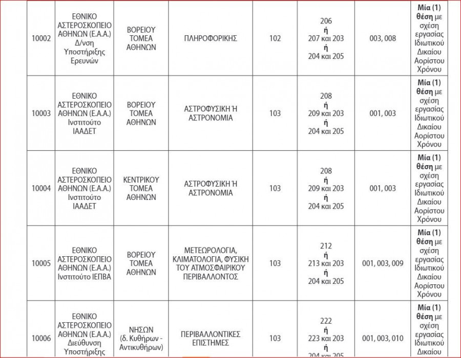 Δείτε αναλυτικά τις θέσεις στους πίνακες: