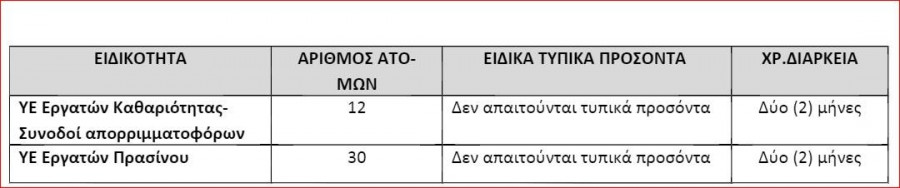 Ο Δήμος Χαλκιδέων ανακοινώνει τη σύναψη σύμβαση εργασίας ιδιωτικού δικαίου ορισμένου χρόνου δίμηνης (2) διάρκειας, με 42 άτομα, για την αντιμετώπιση κατεπειγουσών εποχικών ή πρόσκαιρων αναγκών.