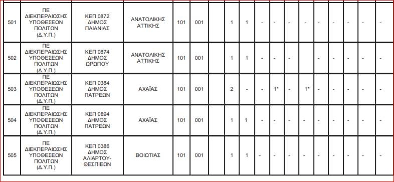 Δείτε αναλυτικά στους πίνακες τις θέσεις:
