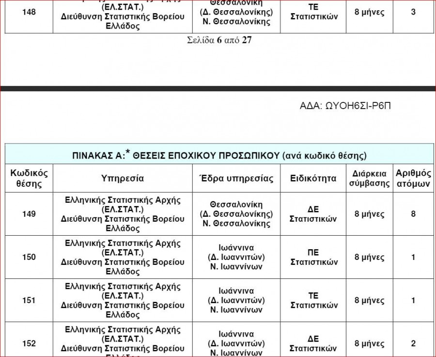 ΕΛΣΤΑΤ: Με 301 άτομα θα ενισχυθεί η υπηρεσία - Όλες οι πληροφορίες