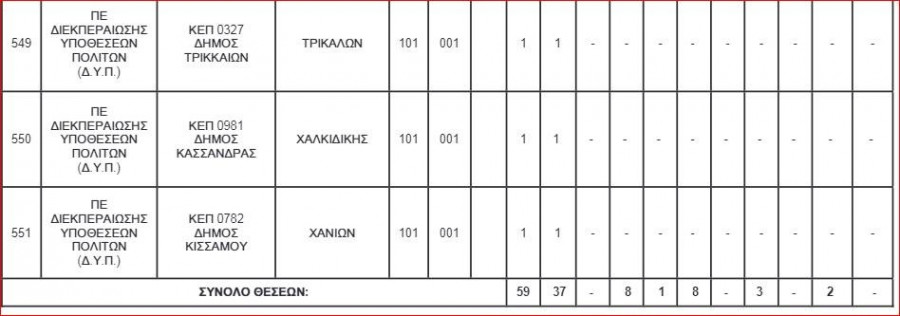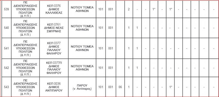 Δείτε αναλυτικά στους πίνακες τις θέσεις εργασίας: