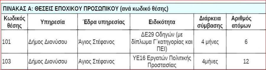 Δείτε στους πίνακες τις θέσεις εργασίας: