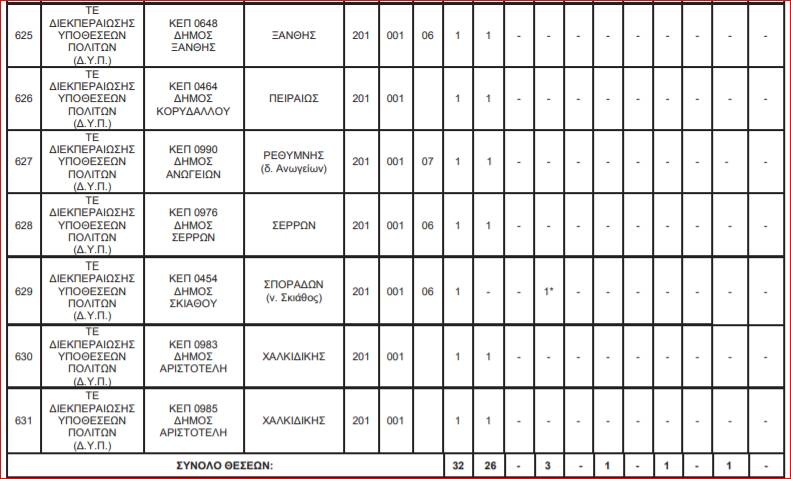 Δείτε αναλυτικά στους πίνακες τις θέσεις: