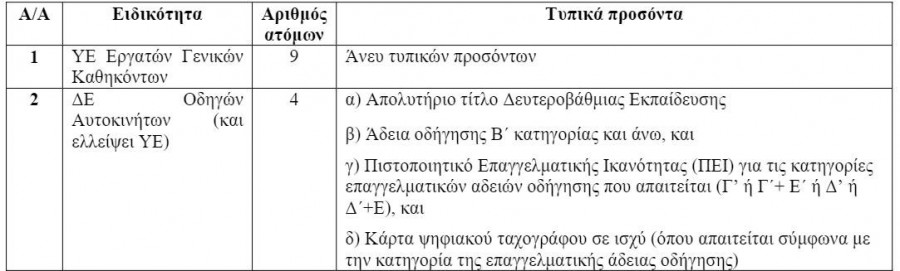 Δείτε αναλυτικά στους πίνακες τις θέσεις εργασίας: