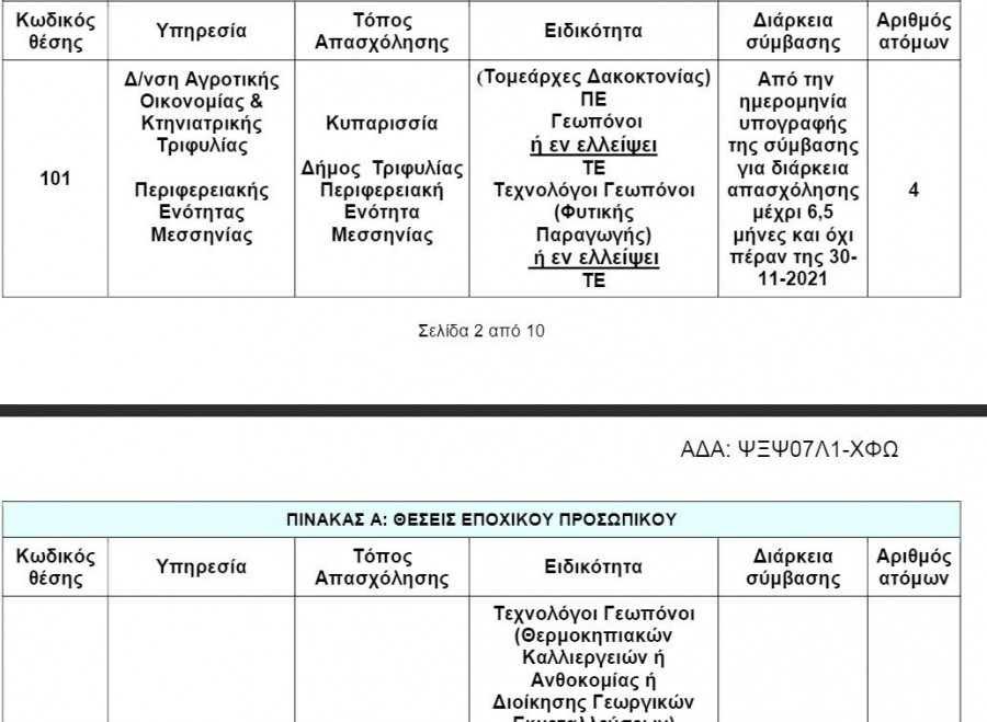 Δείτε στον πίνακα τις θέσεις εργασίας:
