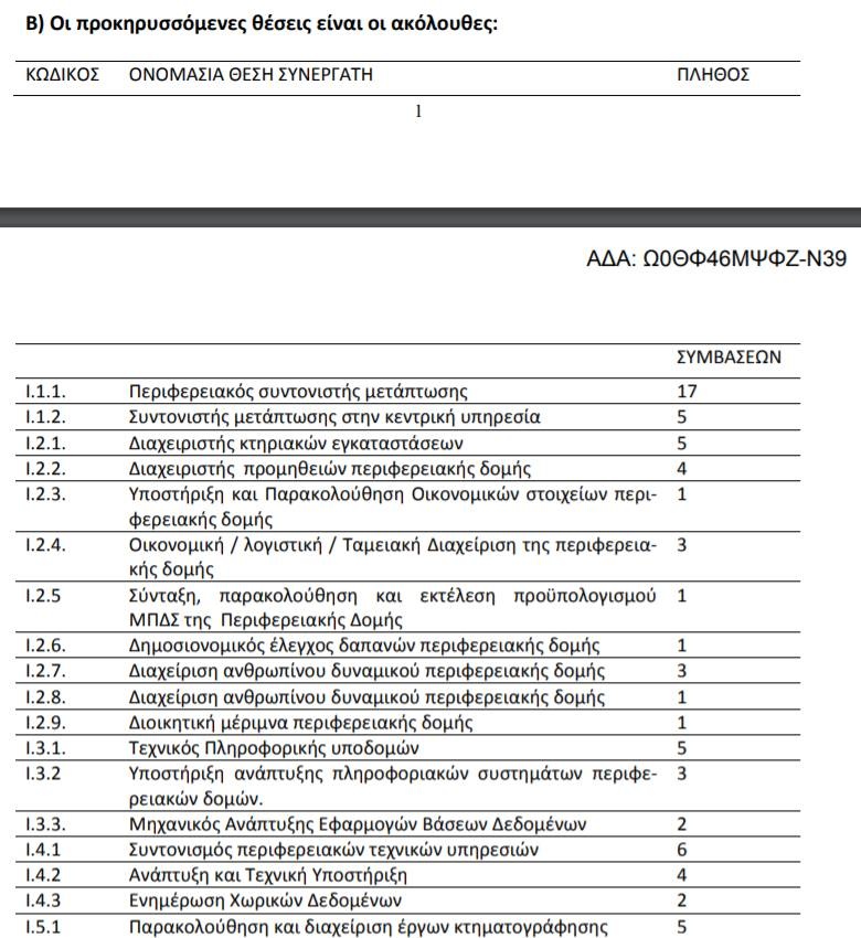 Δείτε στους πίνακες τις θέσεις εργασίας: