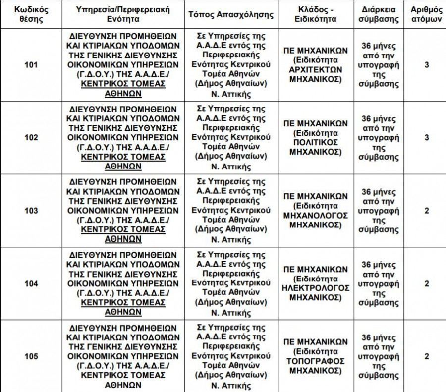 Δείτε στους πίνακες τις θέσεις εργασίας: