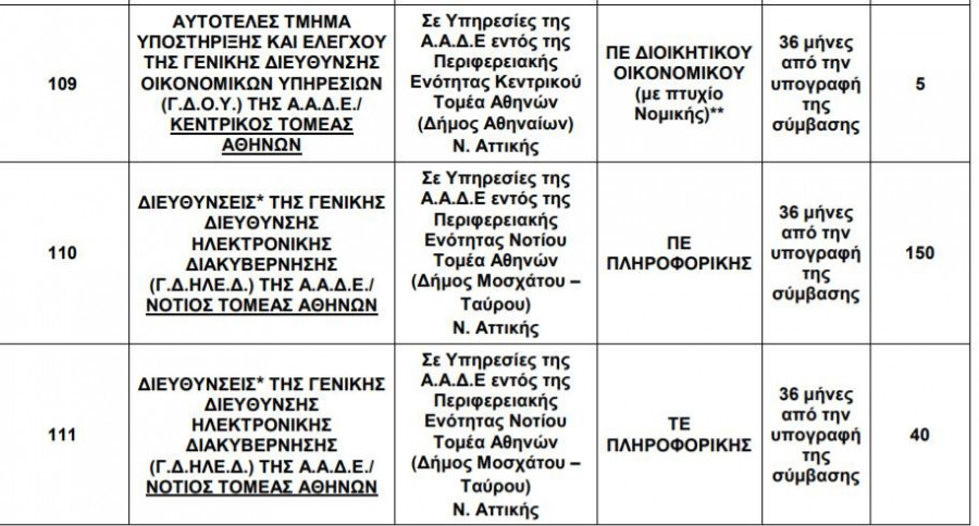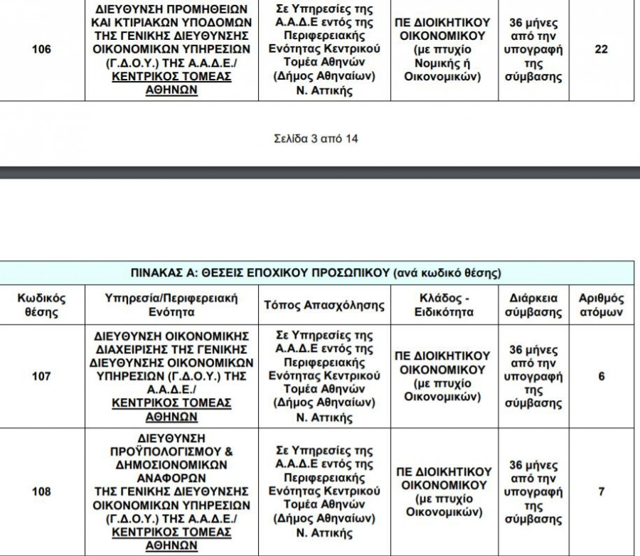 ΑΑΔΕ: Μέχρι 8/7 οι αιτήσεις για 242 θέσεις εργασίας - Δείτε αναλυτικά τις θέσεις (πίνακες)