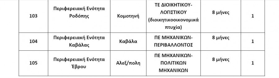 Αναλυτικότερα, ανακοινώνει την πρόσληψη, με σύμβαση εργασίας ιδιωτικού δικαίου ορισμένου χρόνου, συνολικά τεσσάρων (4) ατόμων για την κάλυψη εποχικών ή παροδικών αναγκών της Περιφέρειας Ανατολικής Μακεδονίας – Θράκης και των Περιφερειακών Ενοτήτων Ροδόπης, Καβάλας.