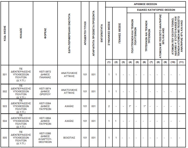 Δείτε στον πίνακα τις περιφερειακές ενότητες που αναγράφονται στην προκήρυξη: