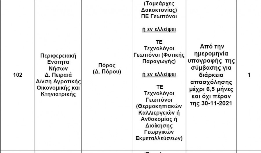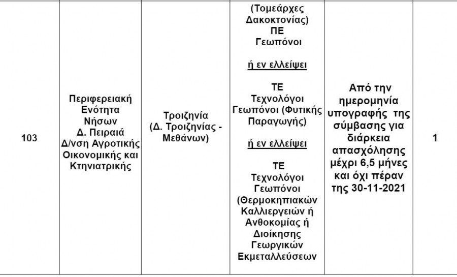 Δείτε στον πίνακα τις θέσεις εργασίας: