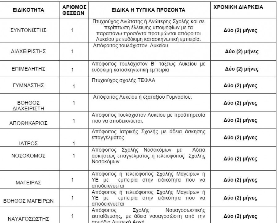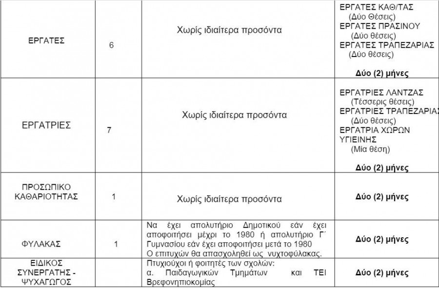 Δείτε στους πίνακες τις θέσεις εργασίας:
