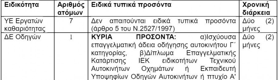Η πρόσληψη προσωπικού θα γίνει με σύμβαση εργασίας ιδιωτικού δικαίου ορισμένου χρόνου, η διάρκεια της οποίας δεν μπορεί να υπερβαίνει τους δύο (2) μήνες, μέσα σε συνολικό διάστημα δώδεκα (12) μηνών, για την αντιμετώπιση κατεπειγουσών εποχικών ή πρόσκαιρων αναγκών.