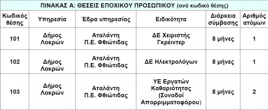 Δείτε στον πίνακα τις θέσεις εργασίας: