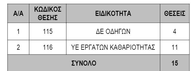 Δείτε τις θέσεις εργασίας στον πίνακα: