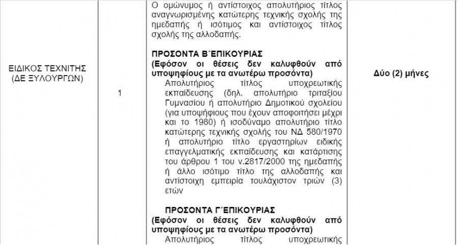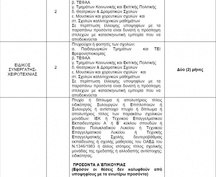 Δείτε στους πίνακες τις θέσεις εργασίας:
